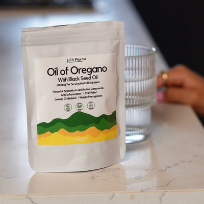 Harness the power of two of nature’s most potent botanicals with EA Pharma’s Oil of Oregano & Black Seed Oil Blend—a science-backed fusion designed to fortify your immune system, support gut health, and promote overall wellness.
